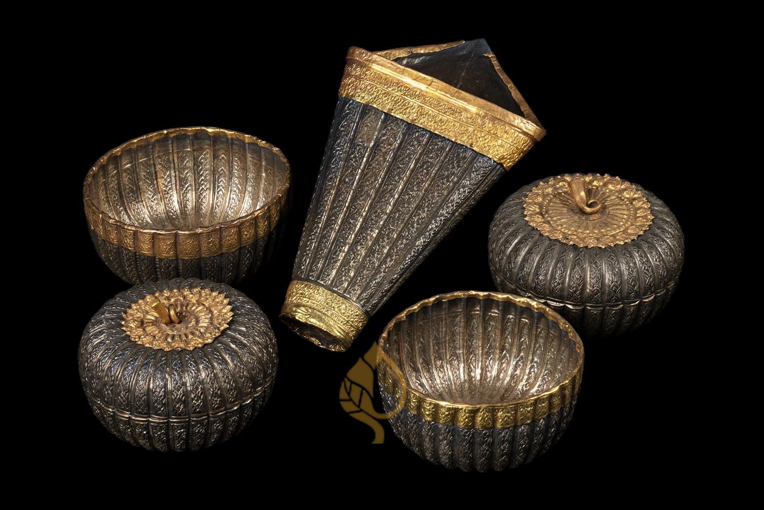 ชุดเชี่ยนหมากเงิน ขลิบทองคำดุนลาย